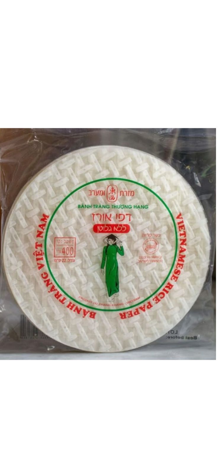 דפי אורז יבישים  על בסיס קמח טפיוקה ואורז .400 ג,22 ס”מ