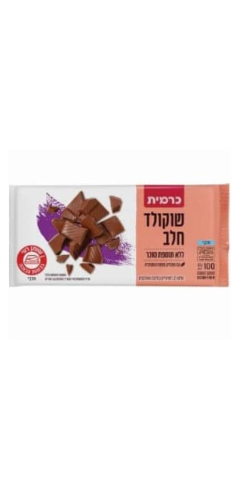 שוקולד חלב ללא תוספת סוכר, ללא גלוטן . כרמית