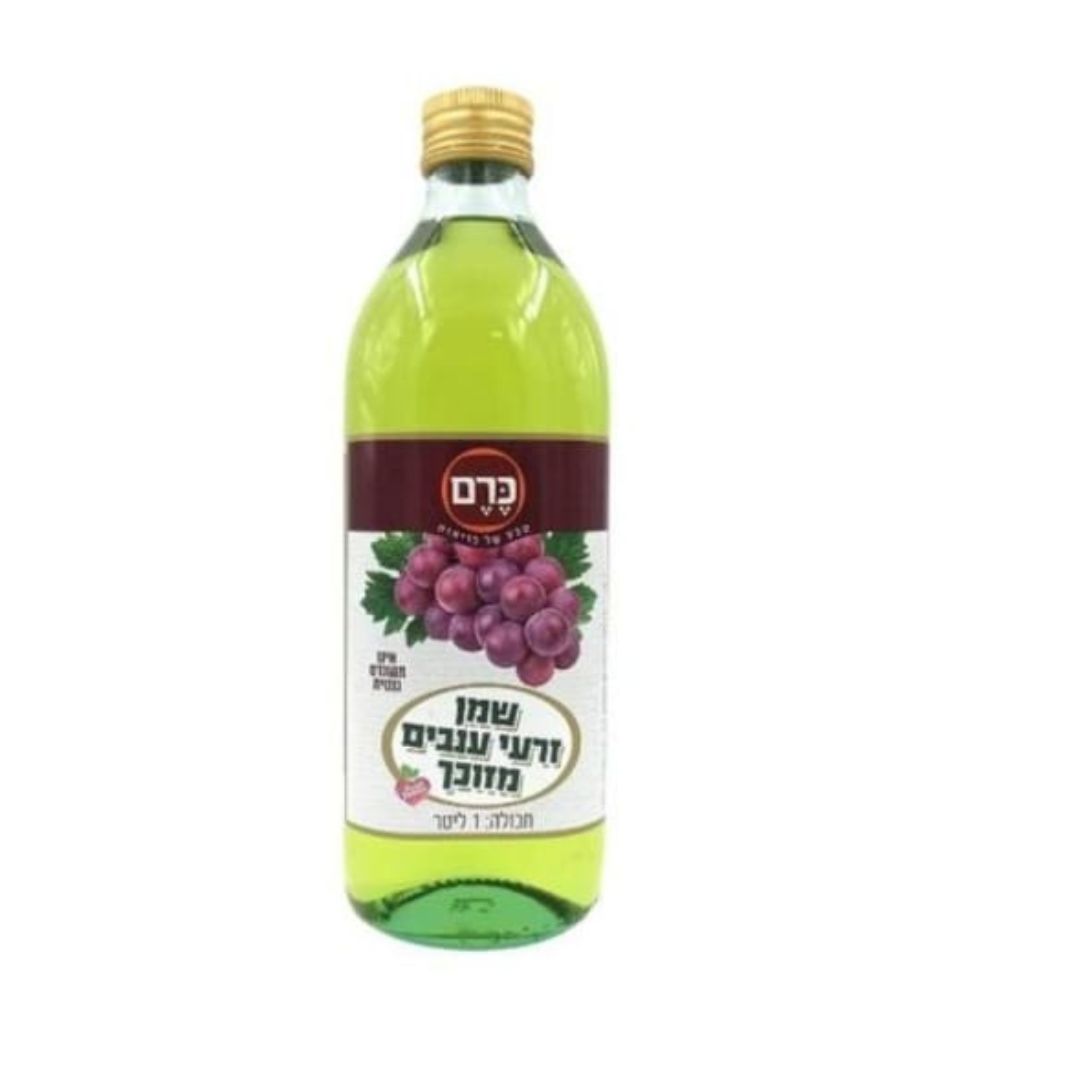 שמן זרעי ענבים אורגני 1″ל ,מתאי לטיגון בישול, קינוחים ,רטבים ומגוון מנות